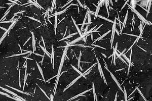 Delicate morning frost water crystals form on the icy surface of the Bow River in the Canadian Rockies.